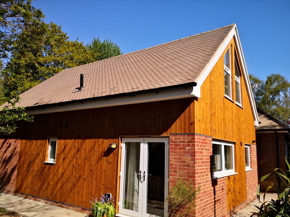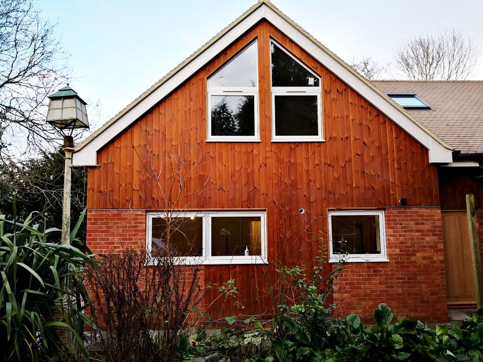 • The SIP construction was then faced off with Brick work and Thermally Treated Nordic Pine Sesame Pre Coated Cladding.