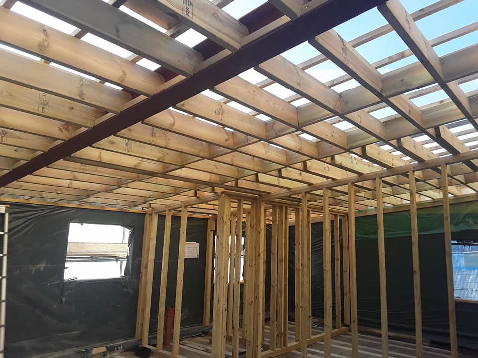The stables is a single storey SIP structure which was built off ground piles and were connected to each other by ring beams. This was due to the poor ground conditions caused by a number of old trees which had to be removed. A Concrete block and beam was then used for the floor construction.
