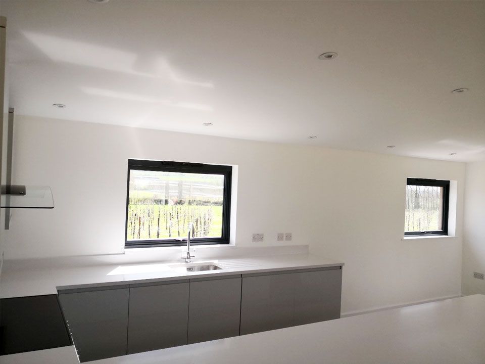 Interior finished to a high standard using light colours on the walls and floor, maximising the light coming in from the large doors.