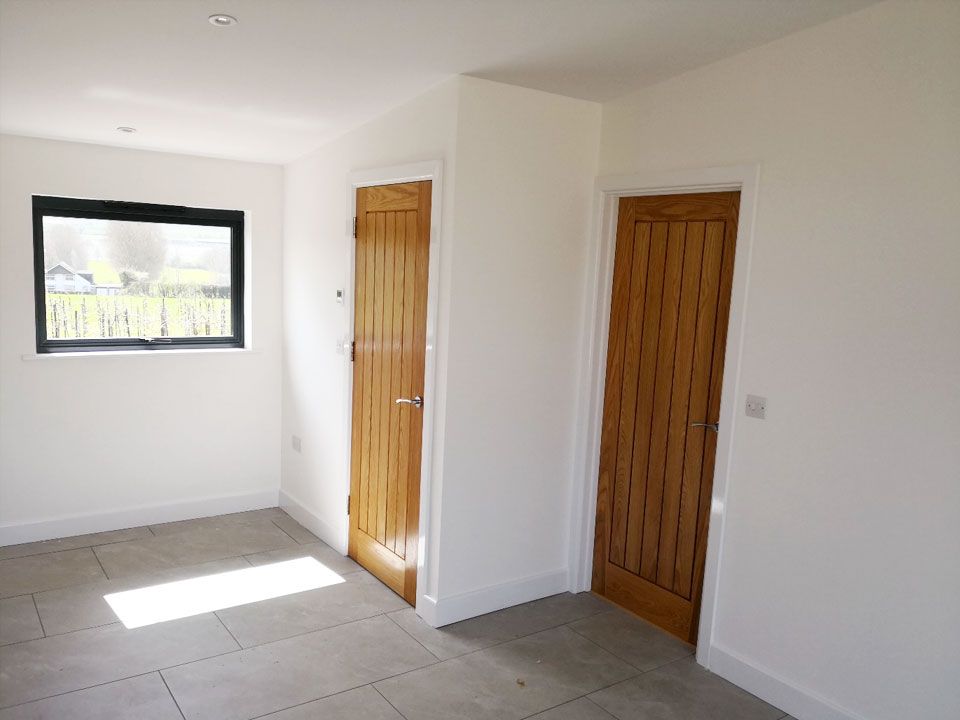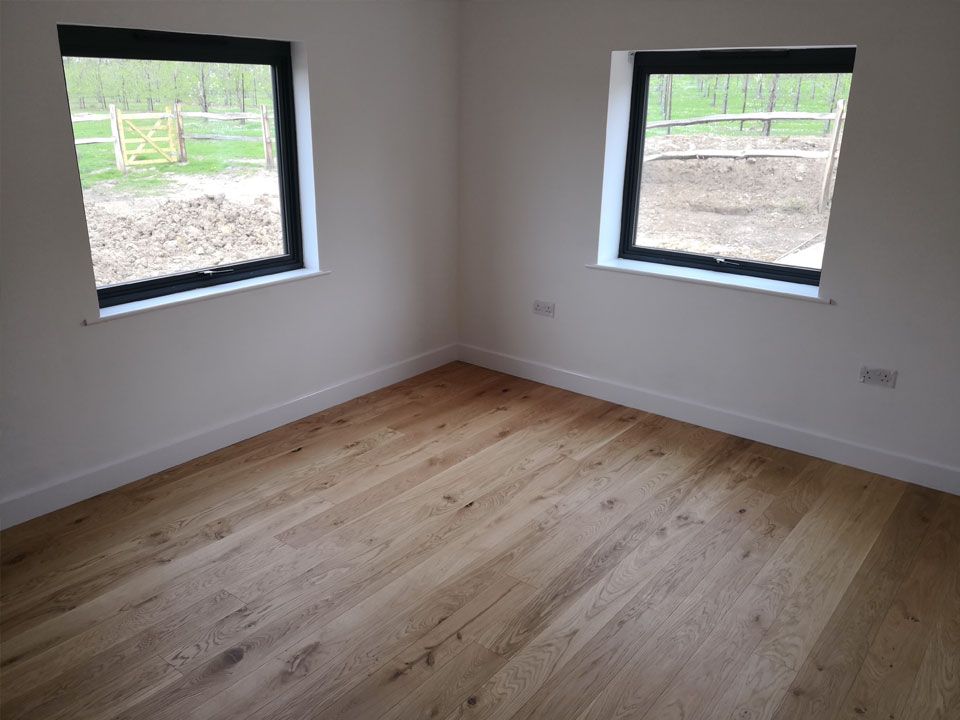 Engineered oak floor and solid oak doors supplied and fitted creating a nice warm feel.