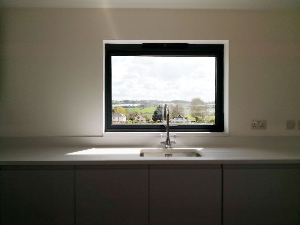 Beautiful grey powder coated aluminium windows and large sliding doors. Together with cedar cladding create a stylish modern look.